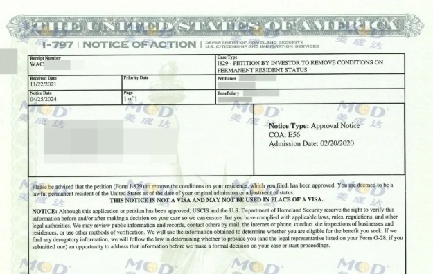 查看詳情恭喜美成達(dá)客戶的EB-5投資移民申請,僅用了7個月就順利獲批!